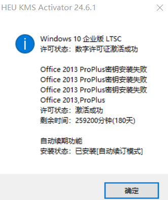 经过筛选,选择了使用软件激活:HEU KMS Activator